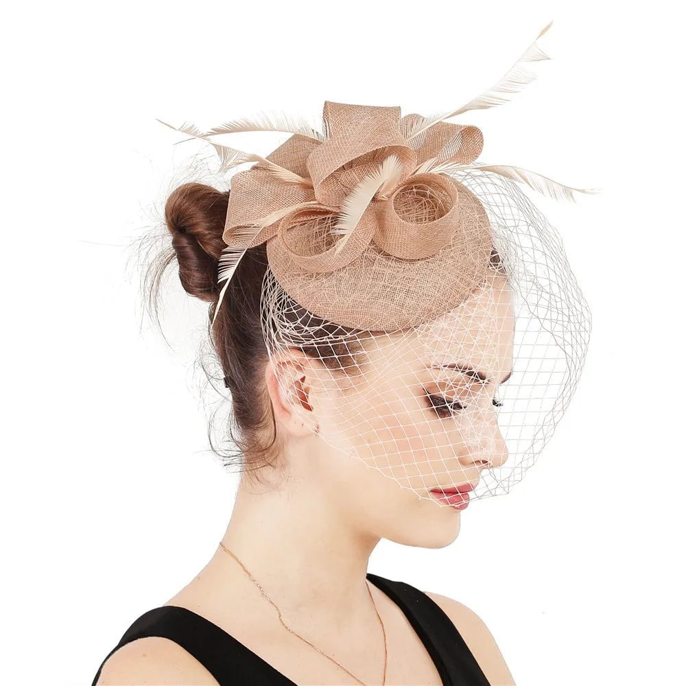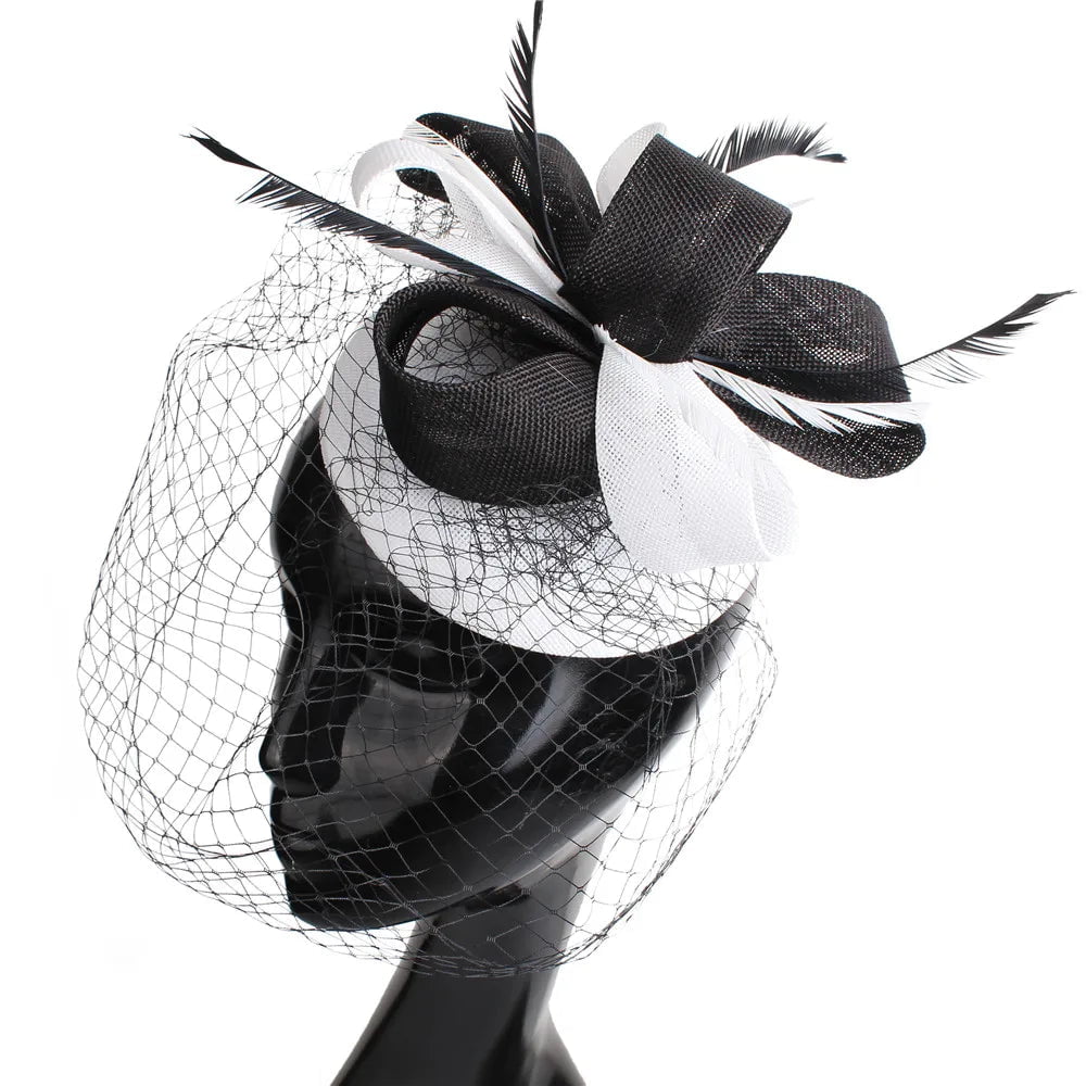 Élégance Assurée : Découvrez Notre Chapeau Fascinator avec Voile et Plumes