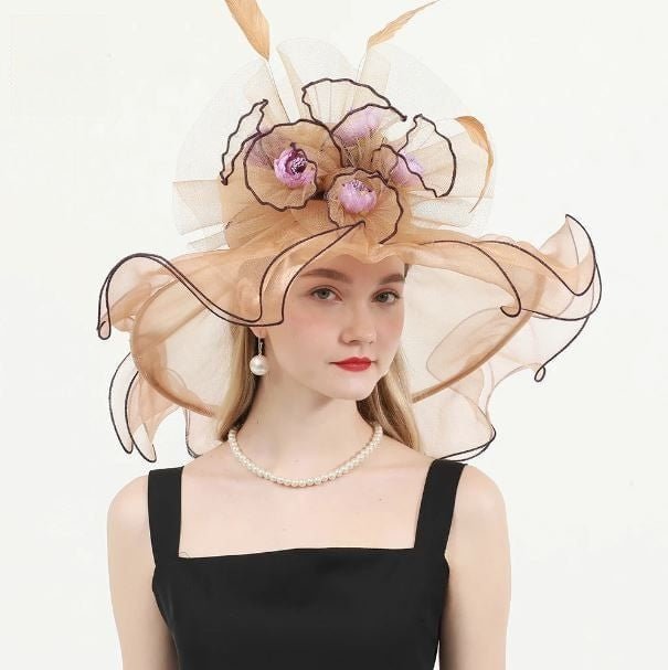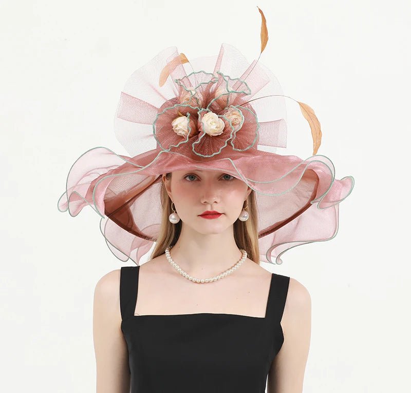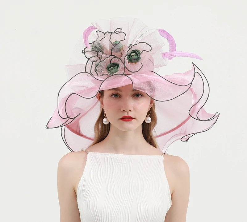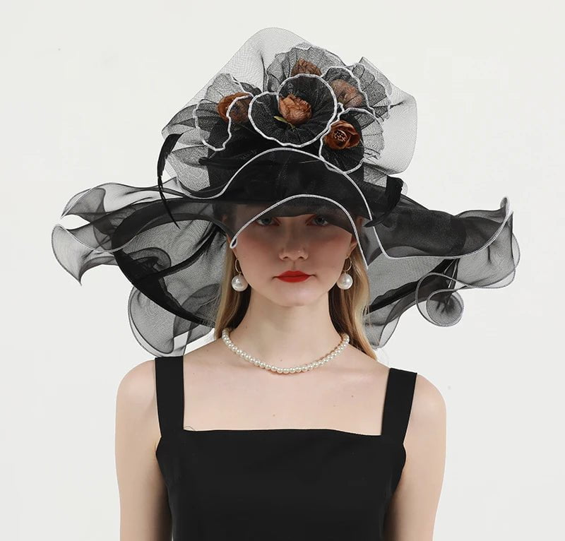 Élégant Chapeau de Cérémonie en Organza et Dentelle pour Femme