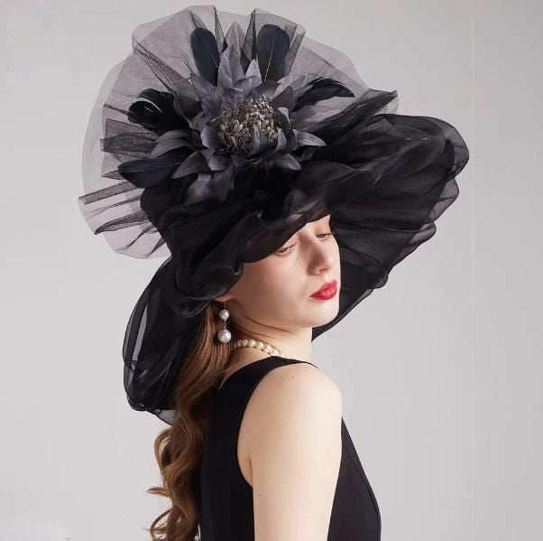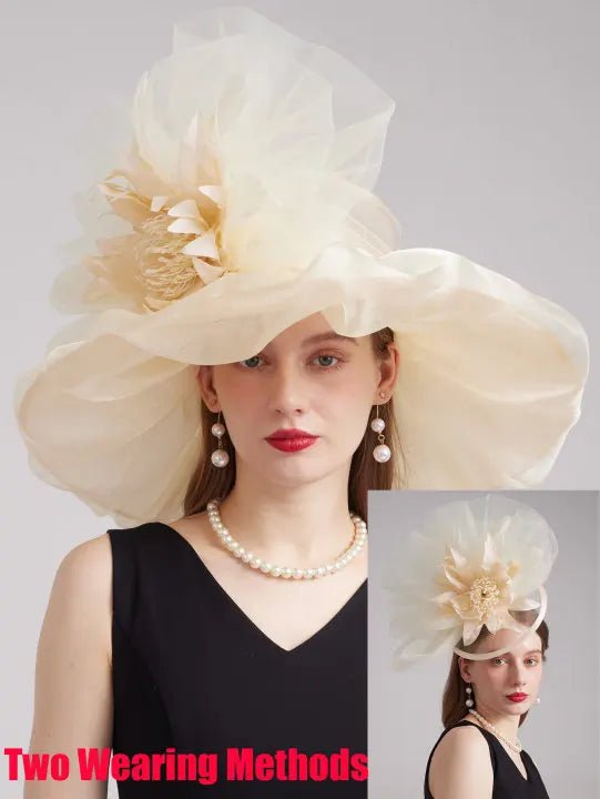 Grand Chapeau Floral en Organza pour Femme : Élégance et Raffinement pour Toutes Vos Occasions