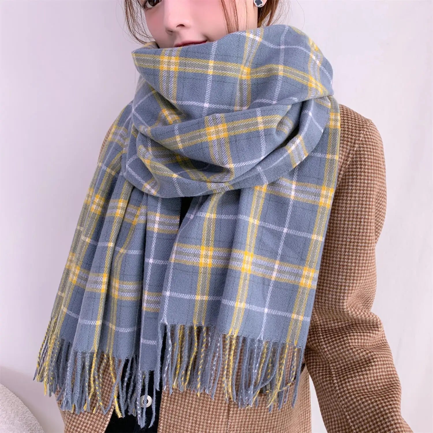 Longue écharpe en cachemire à carreaux